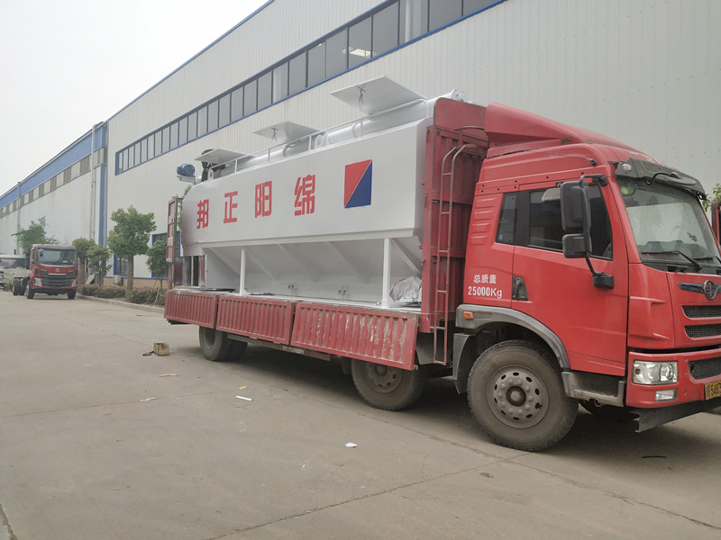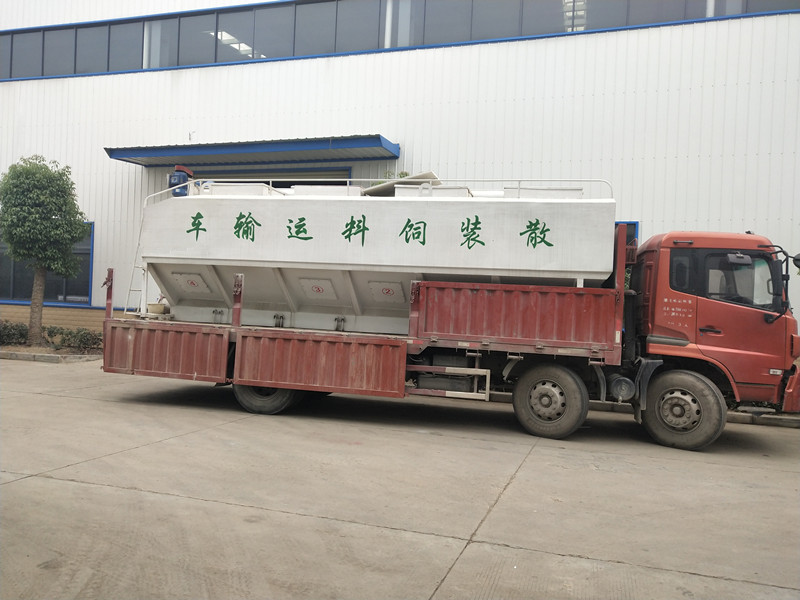 散装饲料罐车使用范围:养猪场育肥舍、保育舍、母猪舍得喂料;大型养殖厂等颗粒状饲料装卸运输,也可用来运输某些无腐蚀性颗粒状原料,如制药厂粉料和粮库周转等;养鸡场和养羊场也可以参照使用。
