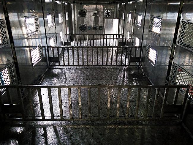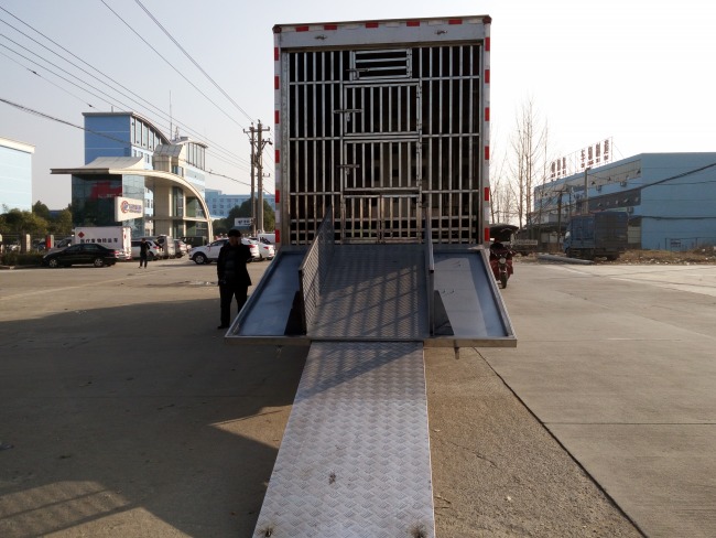 5. 进出通道:后门通过液压系统自动展开形成仔猪进出箱体的通道,设有护栏,方便仔猪上下。
