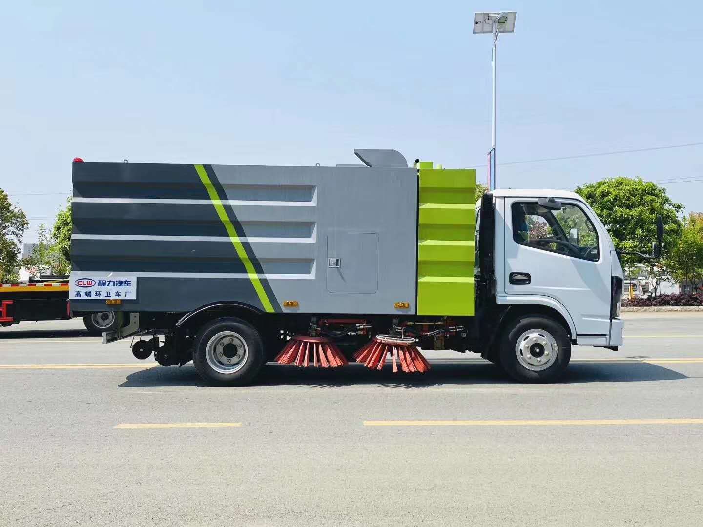道路扫路车:新一代环保、洗 扫 吸 结合式道路清扫专用车辆,主要适用于城市街道、市政广场、大型厂矿的机械化清扫保洁作业,整车作业效率高,技术性能先进可靠,主要部件全部采用纯进口件,造型美观,实用性强。 国六东风小多利卡5吨扫路车配置 配置一:采用全柴120马力发动机(H20-120E60),90kw,万里扬6GT40变速箱,7.00R16钢丝胎,1.8T前桥,3.5T后桥,190车架,气刹,断气刹,电动车窗,中控,带空调,ABS。 配置二:采用朝柴130马力发动机(CY4BK461),95kw,万里扬5TS40变速箱,7.00R16钢丝胎,1.8T前桥,3.5T后桥,188双层车架,气刹,断气刹,电动车窗,中控,带空调,ABS。 上装配置:水箱容积:1.5立方,垃圾箱容积:4立方;中置4扫盘,扫盘转速实现独立3档调速,江铃77马力副发动机,三洋马达,施耐德控件开关,台湾液压阀或海普瑞斯电磁阀组,长源液压油泵,新西山水泵,免维护自分离式离合器,免维护风机,尾部LED箭头灯,手动泵应急系统,前扫刷臂转动机构使用高新耐磨工程隔套,免打黄油,精密冷弯无缝液压油管,清扫宽度:2.8--3.2米,清扫速度:3-20km/h,最大吸入粒度:120mm,最大清扫能力:50000m2/h。 选装配置:选装倒车和右扫影像;前冲后洒(洒水泵),前置绿化炮;前后喷雾;加大副水箱;手持吸尘管;低水位报警;驾驶室空调。 东风小多利卡5吨扫路车特点 1、扫路车的垃圾箱最大容积可达到4立方,可持续作业4小时以上。清水箱容积1.5立方,在进行清扫工作的时候可有效抑制二次扬尘。 2、扫路车采用吸扫结合的方式收集垃圾,湿式除尘、电液控制,液压倾翻卸料的作业方式对路面进行清扫作业。 3、扫路车采用副发动机专门驱动风机和液压系统,保证行驶过程中能继续工作,保证清扫过程的连续性。 4、扫路车采用“中置四盘刷+后置吸嘴”的结构布置,便于清扫装置与吸嘴的调整和维护,转场时整车通过性好。 5、扫路车副发动机与风机之间的传动设置设有自动离合器,可保证副发动机空载起动和停机时与风机的自动脱离,降低对副发动机的冲击,提高了副发动机的工作可靠性和使用寿命。 6、扫路车扫盘有遇障避让保护功能和复位功能,遇到障碍物后回缩,越过障碍物后复位。 7、根据不同清扫工况,在不增加副机油门的情况下,实现扫盘高中低三档调速,即能保证在各种污染状况下都有良好的清扫效果,同时节省油耗以及刷毛的损耗。 8、采用可随路面自动找平的全浮动式吸嘴,吸尘效果好,使用寿命长。 9、选用进口液压阀组,能保证整车的液压动作的稳定性和流畅性。 10、选用优质液压马达,能保证扫盘的工作稳定性,使用寿命长。 11、选用进口原料制成的外翻式吸尘管,有效防止吸尘管被划破、冻裂,增加使用寿命。 12、采用精密无缝冷弯液压油管,内壁无氧化杂质,保证液压油路清洁,不堵阀。 13、扫路车的扫盘刷臂内使用高性能工程塑料隔套,耐磨性好,免打黄油免维护,节省人力物力。 14、采用不锈钢材质的垃圾箱、水箱,可抗一般性腐蚀,增加箱体的使用寿命。 15、扫路车采用超宽后门且大于85度的开启角度,更易于倾倒垃圾,清理垃圾箱。 16、扫路车的垃圾箱倾翻角度大于46度,易于倾倒垃圾。 17、扫路车还可根据用户需求加装前冲、后洒、喷雾、自洁卷盘、作业监控系统、辅助吸管装置、推雪铲等。 |
