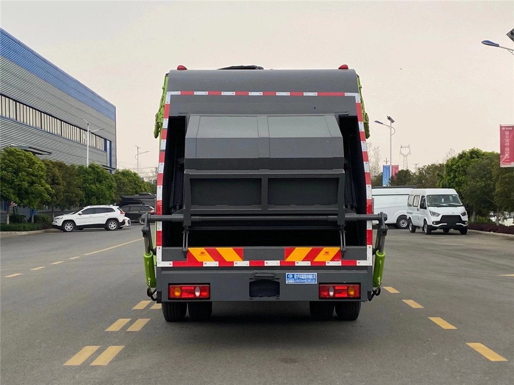 配置介绍 | (1)箱体采用国标4mm厚Q345材质锰钢板制作,圆弧形箱体,无筋条,美观大方且强度高。底箱及填充器采用加厚钢板。 (2)箱体容积12方,双向压缩。 (3)在填塞器翻转填料斗和装填器间加装一个边缘挡板以防止垃圾外泄, (4)加强装填器与车厢连接处的密封,以防止压缩过程中垃圾外泄和垃圾渗滤液的滴漏。 (6)尾部填装机构有5种样式:摆臂式翻转架、挂桶式翻转机构、大落地斗、小三角斗、无翻转机构。 (7)液压系统选用扬州中梅多路阀,合肥长源油泵,全车海普瑞斯(合资品牌)液压油缸,日本华尔卡密封圈。