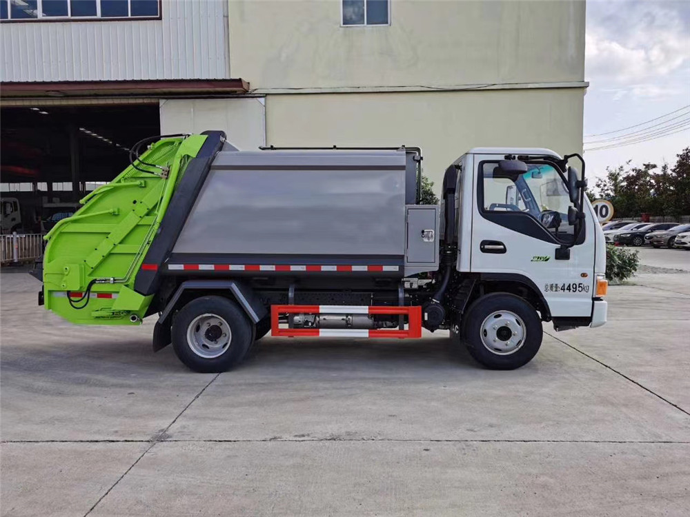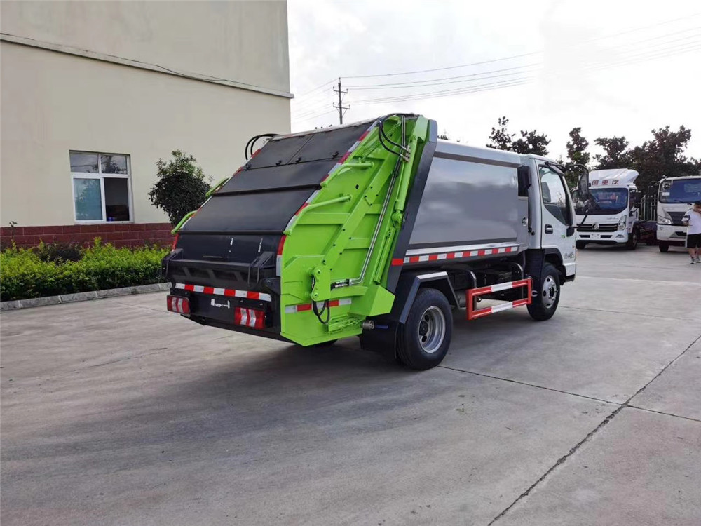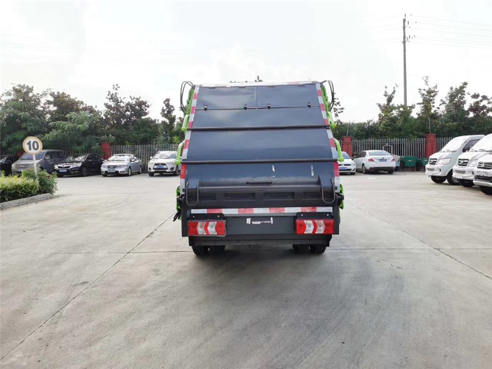 配置介绍 | (1)箱体采用国标4mm厚Q345材质锰钢板制作,圆弧形箱体,无筋条,美观大方且强度高。底箱及填充器采用加厚钢板。 (2)箱体容积6方,双向压缩。 (3)在填塞器翻转填料斗和装填器间加装一个边缘挡板以防止垃圾外泄, (4)加强装填器与车厢连接处的密封,以防止压缩过程中垃圾外泄和垃圾渗滤液的滴漏。 (6)尾部填装机构有5种样式:摆臂式翻转架、挂桶式翻转机构、大落地斗、小三角斗、无翻转机构。 (7)液压系统选用扬州中梅多路阀,合肥长源油泵,全车海普瑞斯(合资品牌)液压油缸,日本华尔卡密封圈。